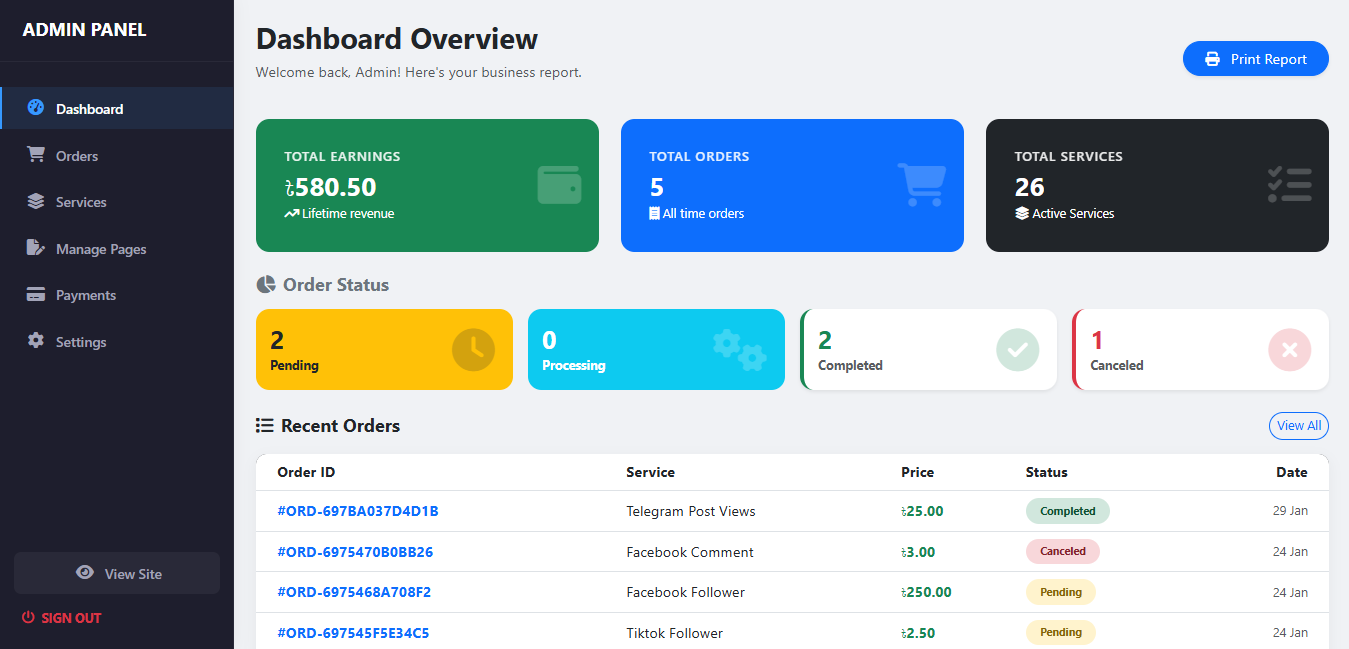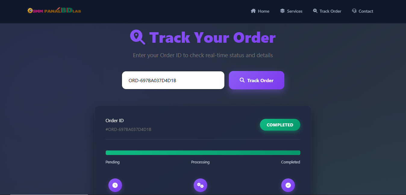 Track Order System (Pending, Processing, Completed, Cancelled)